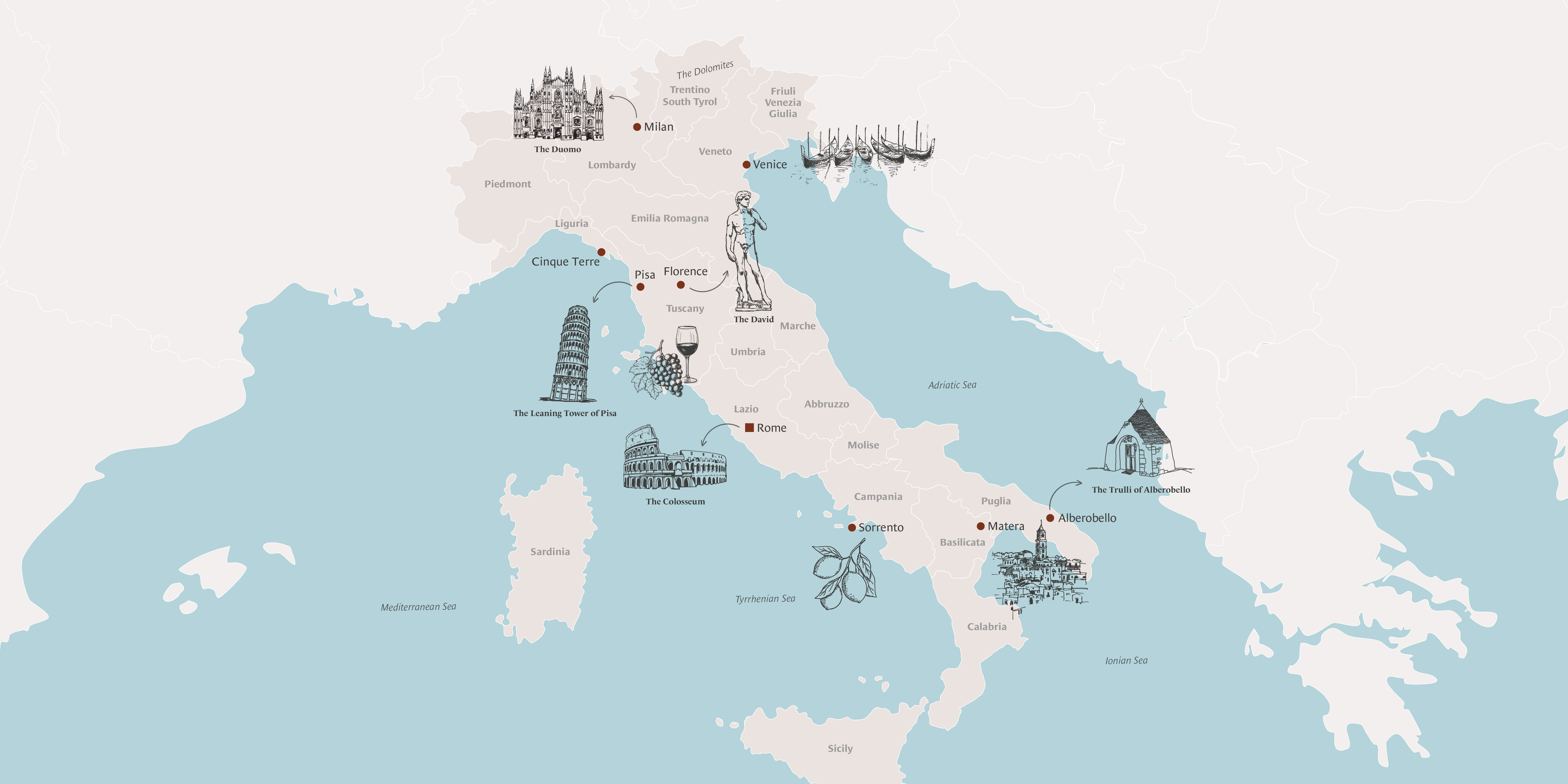 No matter what kind of traveller you are - history buff, foodie, nature lover, or adventure seeker - there’s a corner of Italy waiting to enchant you. From the snow-capped Alps in the north to the sun-drenched shores of the south, each part of Italy has its own story to tell, its own flavours to taste, and its own wonders to discover. There are Renaissance masterpieces to discover in Tuscany, charming coastal villages to explore along the Amalfi coast and culinary delights in every region.