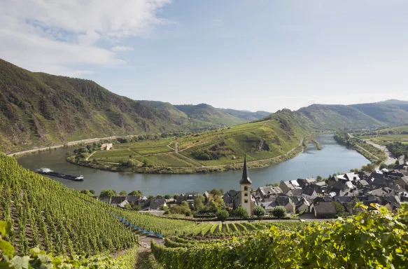 Discover the scenic charms of the Moselle River as it meanders past picturesque medieval towns, rolling hills, and sloping vineyards.