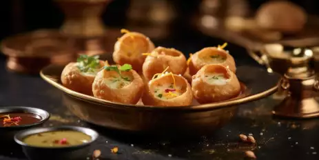 The best way to enjoy pani puri is from street vendors in Mumbai, Kolkata, or Lucknow, where the flavours are bold and the experience is unforgettable.
