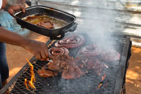 From beachside grills to vibrant township eateries, a proper braai is essential. A braai is more than a barbecue — it’s a social gathering where a feast is cooked over a wood or charcoal fire. Think boerewors (spiced sausage) with pap (maize porridge) and chakalaka (spicy tomato and onion relish), plus a golden braaibroodjie (sandwich). For something sweet, a peppermint crisp tart or sticky koeksister (syrup-soaked dough twist) is pure local joy.