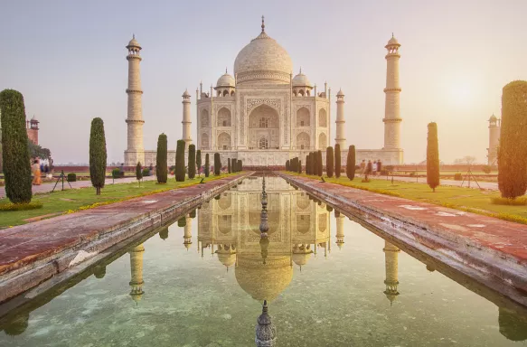 Agra is home to India’s defining landmark, the Taj Mahal, and our visit is an indisputable highlight of the tour. After taking electric cars to the entrance (they protect the Taj from pollution), we catch our first glimpse of it, poetically framed by an arch.