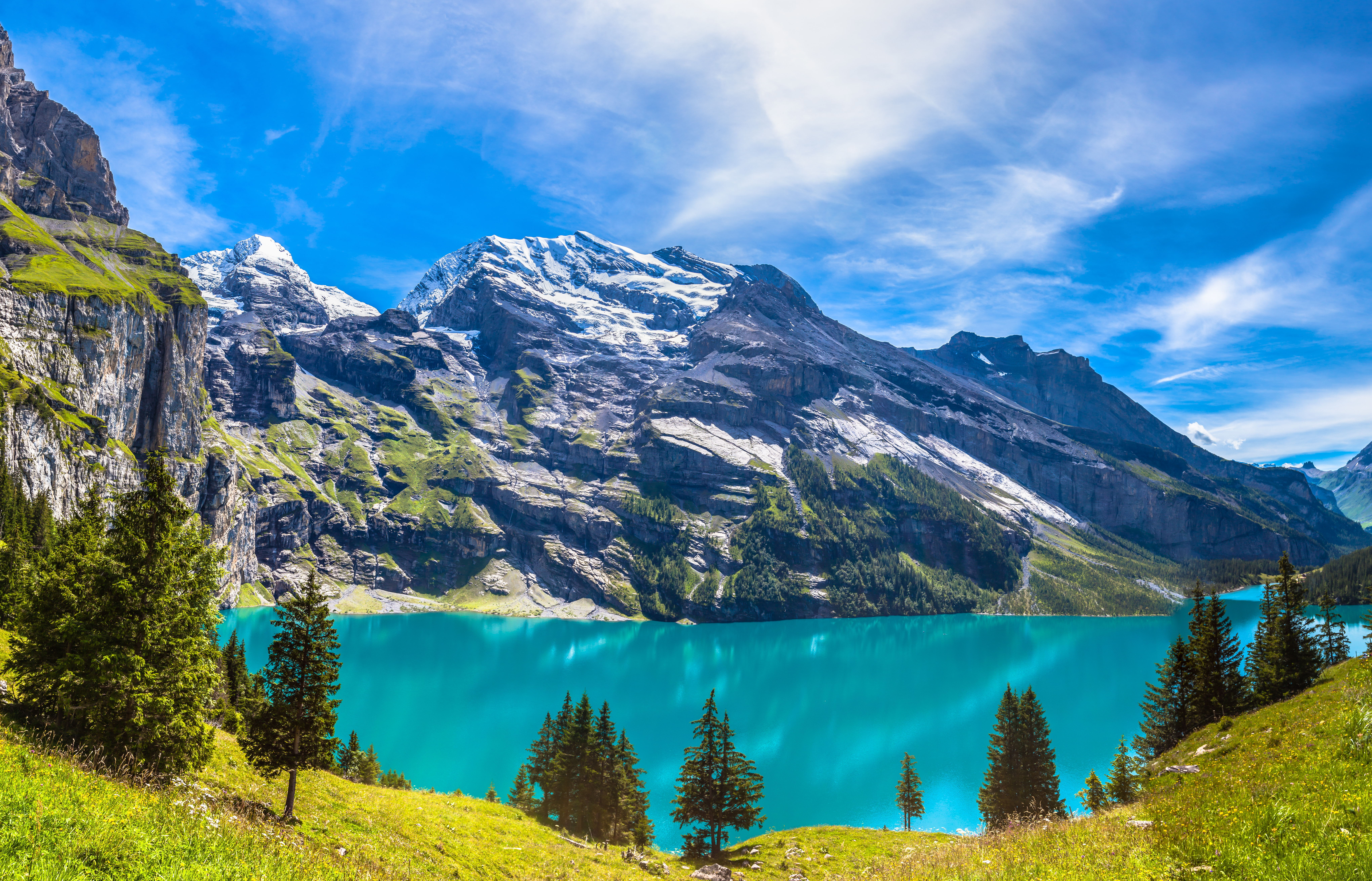 A cable car up to Lake Oeschinen is a fun activity to do too. Situated high above the resort of Kandersteg, it’s a pleasant half-hour wander through pine forests to the lake’s sparkling crystal-clear waters. The vistas from the top are extraordinary. The Aletsch Glacier is another excellent place to visit in Switzerland. A UNESCO World Heritage Site, the glacier is one of the longest in the European Alps, stretching an incredible 23km (14 miles).
