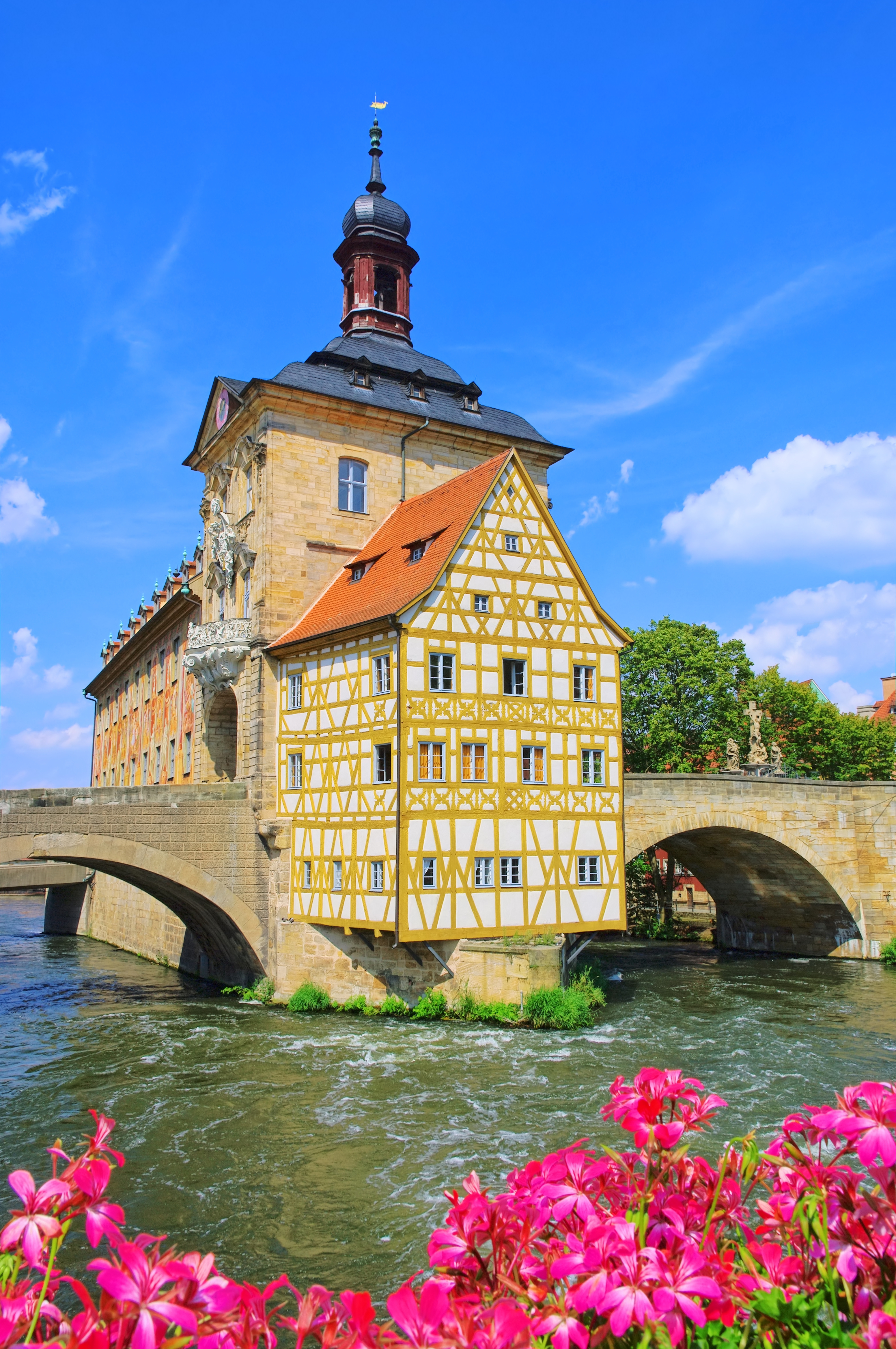The towns along the canal are beautiful, too, offering some of the best-preserved examples of medieval German architecture. In Bamberg, close to where the canal begins, the old, half-timbered town hall sits in the middle of a twin-arched bridge over the river Regnitz, which flows through the town. The cathedral dates back to the 11th century and the narrow streets are lined with Baroque patrician houses. The town has several breweries and is famed for its smoked beer (Rauchbier).