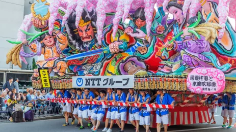 - A large, decorated float depicting a brave warrior – or Nebuta – is lit up and carried around the city
