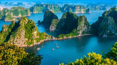 A UNESCO World Heritage Site, Ha Long Bay is a surreal seascape of limestone karsts rising from emerald waters.