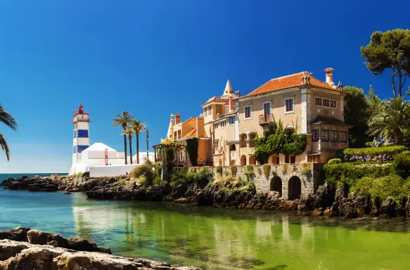 The afternoon is yours to enjoy as you please. You might wander the narrow streets, dip into independent shops or settle into a café for a leisurely lunch. If you feel like venturing further, Sintra has a habit of rewarding curiosity. The colourful Pena Palace rises above the town in the wooded heights of Parque da Pena, while the romantic Monserrate Palace offers striking architecture and beautifully kept gardens, perfect for a gentle wander – Sintra has a way of filling the day without ever feeling rushed.