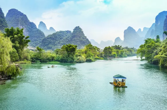 Cruising down the Li River this morning is an absolute delight. The river snakes past a procession of jutting limestone karsts with bizarre names and associated legends. They rise from the flat rice paddies surrounding the river and mountain peaks covered in tropical forests - it's easy to see why this magical landscape has been celebrated by generations of the greatest Chinese painters and poets. Get your cameras ready and look out for farmers tending to their crops in the fields, swaying bamboo groves and maybe even buffalo cooling in the river. You'll want to capture this moment.