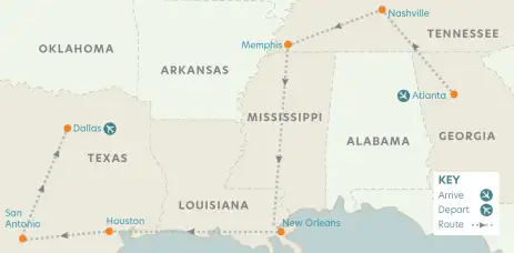 Experience the unique culture, history, and music of America’s Deep South, home of the blues, plus the charms and classic images of Texas, the 'Lone Star State'.