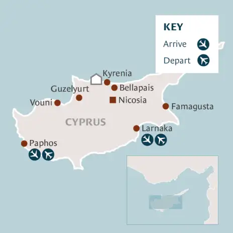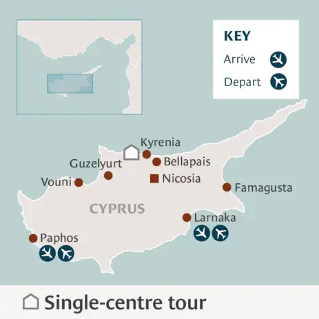 - Spend a full day touring including Güzelyurt and the Palace of Vouni, plus stops at Lefke and the ancient city of Soli - offering a detailed look at life in late Roman and early Byzantine times and where St Mark was baptized.’