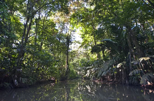 Passing coffee and banana plantations and small farming communities, we'll head to Costa Rica's Caribbean coast. Boarding a small, motorised boat, we’ll enjoy an adventure through the rainforest's canals - it's the only way to reach the eco-lodge, where we'll stay for two nights. After we've settled in, we'll visit the nearby town of Tortuguero and the Caribbean Conservations Corporation Museum, dedicated to studying Atlantic green, hawksbill and leatherback turtles who come to lay their eggs on the protected beaches here between July to October. Many species of turtles which lay their eggs on these beaches came close to extinction until the area was declared a national park.