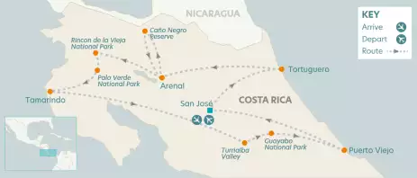 - Travel to the remote Caño Negro Wildlife Refuge, renowned for its incredible birdlife, and search for native Tortuguero wildlife along the Caribbean coastline in Tortuguero National Park.