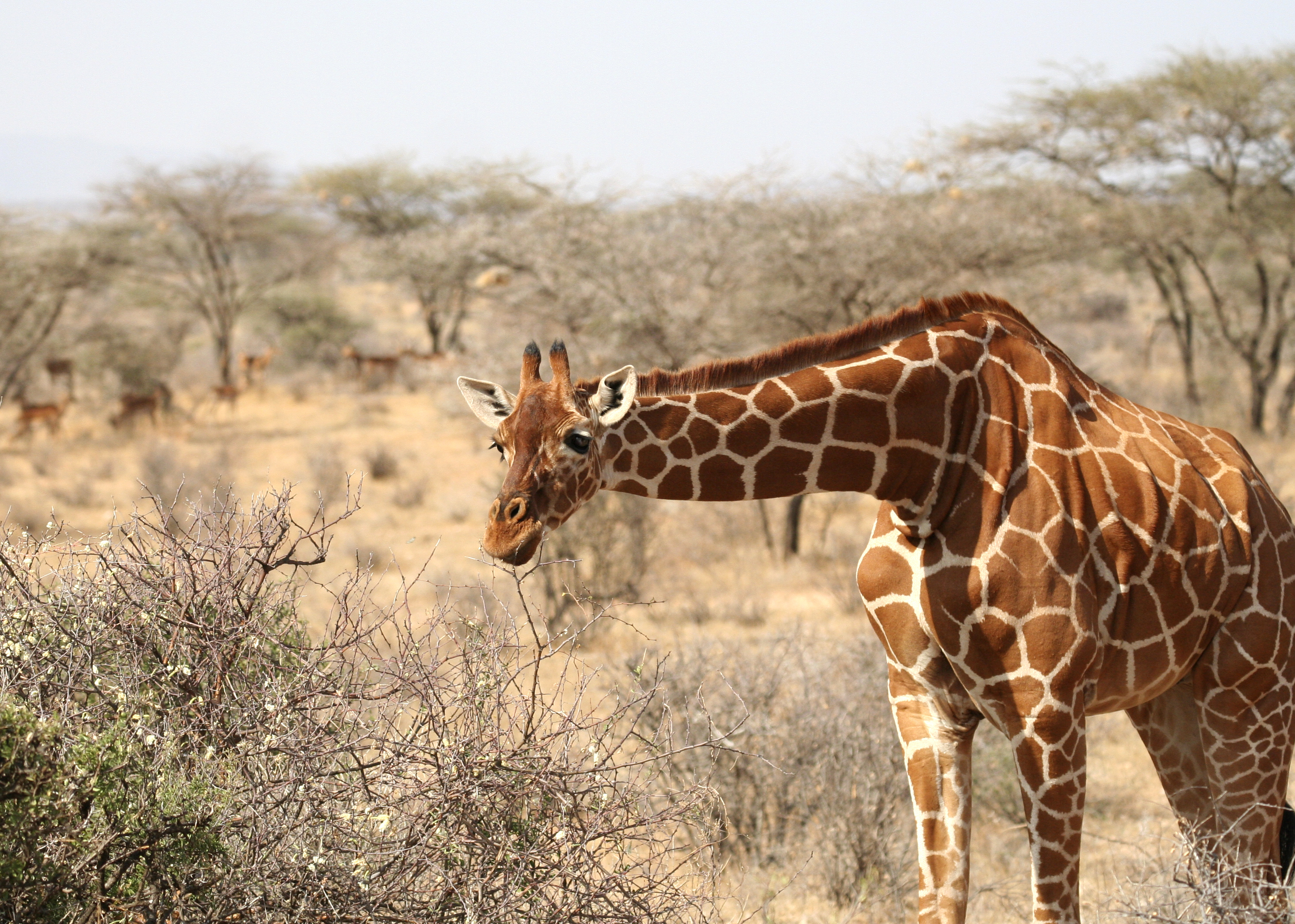 Arriving in time for lunch, we start exploring Buffalo Springs Reserve in the afternoon. The reserve is located between the lush highlands of southern Kenya and the arid deserts in the north. Buffalo Springs Reserve and Samburu Reserve are divided by the Ewaso Ngiri river, fringed with trees such as giant acacias, figs, and doum palms that slice across the scorched land, creating a dramatic contrast with rare wildlife, diverse birdlife and stunning natural landscapes.