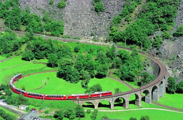 - Travel aboard the legendary Bernina Express, a panoramic alpine railway offering breathtaking views of glaciers, peaks and valleys.