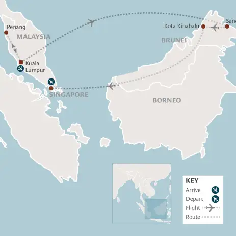 Experience the colonial history of Malaysia and its modern 'cultural melting pot', the tropical charms of Borneo - the land of the orangutans - and the sci-fi cityscape of Singapore, the Garden City, on our Grand Tour.