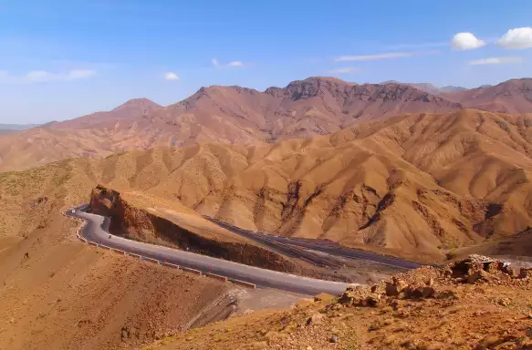 Journey through lush valleys and cross Tiz n Tichka pass on route to the Berber village of Ouirgane in the Atlas Mountains.