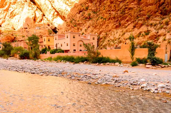 Our journey takes us through the spectacular Todra Gorge, where sheer cliffs rise up to 300 metres and sunlight dances across the rock faces, creating magical illuminations. Keep an eye out for nomads and locals tending their animals along the riverbanks and winding roads.