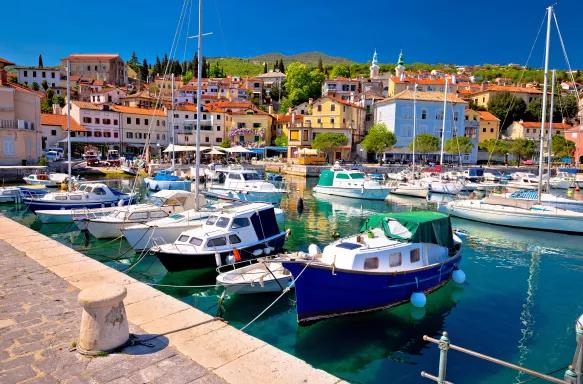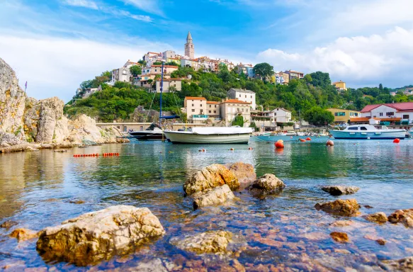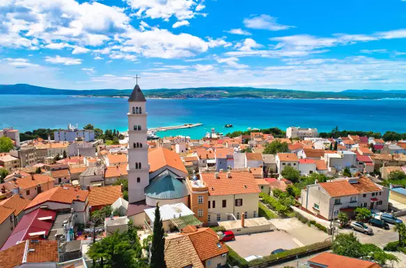 Krk Island is connected to the mainland by a 1,430-metre-long bridge, which we'll cross on our journey. From the comfort of the coach, you'll be treated to glittering views of the sea and rocky limestone coastline covered in patches of sub-mediterranean foliage and pine forests. Our first stop is the island's eponymous walled town, where we'll enjoy a guided tour.