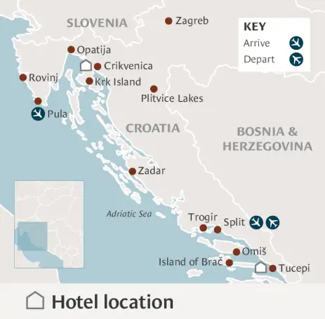 Arrive in Split, then transfer to the costal town of Crikvenica for a six night stay and enjoy a welcome drink before an included dinner.