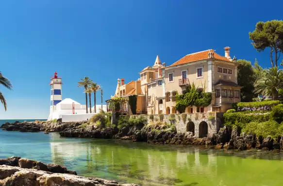 Before we return to Cascais, we'll drive to Cabo de Roca, the most westerly point of mainland Europe where you can appreciate views of the coastline atop 100 metres high cliffs. It's hard to believe now but these cliffs were thought to be the edge of the world right up until the 14th century. They're now home to a lighthouse which can be seen from 46km away. We'll return to Cascasis on a panoramic drive back via Guincho Beach, which lies at the foot of Sintra hills.