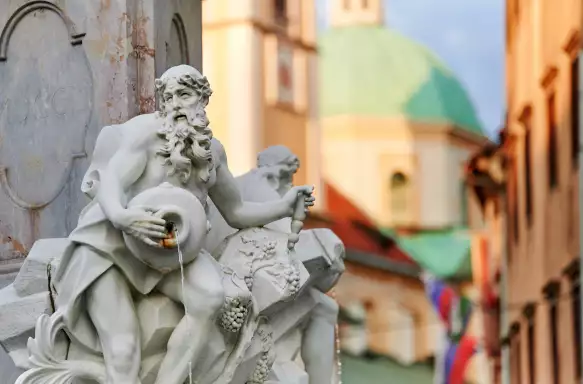 Our tour takes us through the enchanting pedestrianised Old Town nestled between the base of Castle Hill and the river. Towering above the thickly forested mound sits the 15th-century castle, which has endured as a fortress, a residence for the provincial governor, a barracks, and even a prison. The old town is a charming maze of white-walled, red-roofed buildings hiding a trio of squares, each home to some of the city's landmarks, including the Town Hall, the Hercules Fountain, the Church of St Florian, and the Sticna Mansion, famous for the remarkable Stična Manuscripts crafted by Cistercian monks. And let us not forget the breathtaking Church of St. Nicholas, a perfect example of Roman baroque architecture. (Be sure to glance inside for a glimpse of its ornate gilded interiors - one of our first "wow" moments of the tour.)