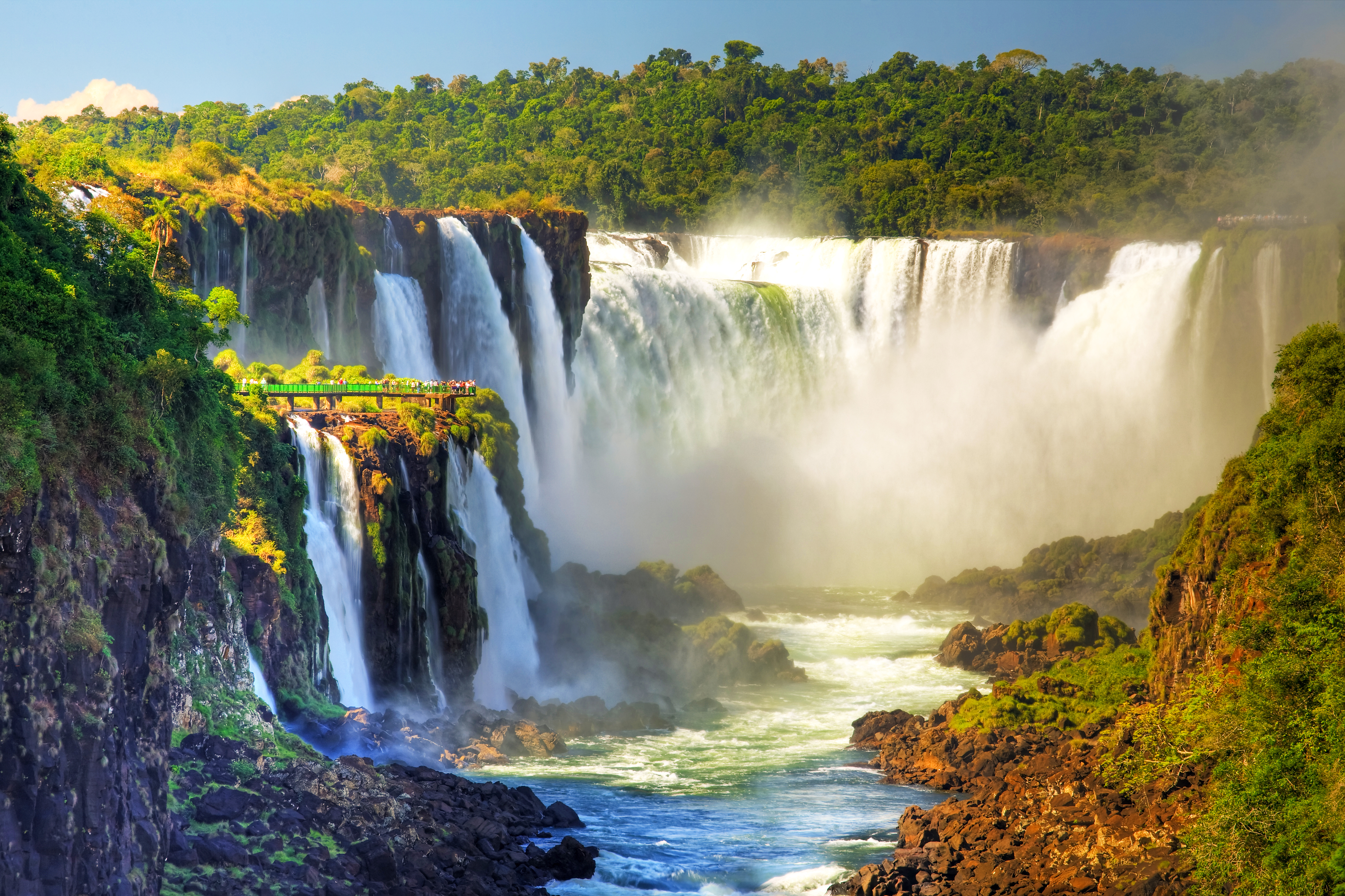 The Argentinian side of the falls is known for its numerous viewpoints including the stunning Devils’ Throat balcony. There are many small and large falls, which are easily accessed by wooden boardwalks through the lush forest surrounding the falls. We also catch the charming open-sided ‘jungle train’ to the head of the falls. For the more adventurous, there is the option to take a jetboat ride to the foot of the falls on the Iguazu river – you will get seriously wet!