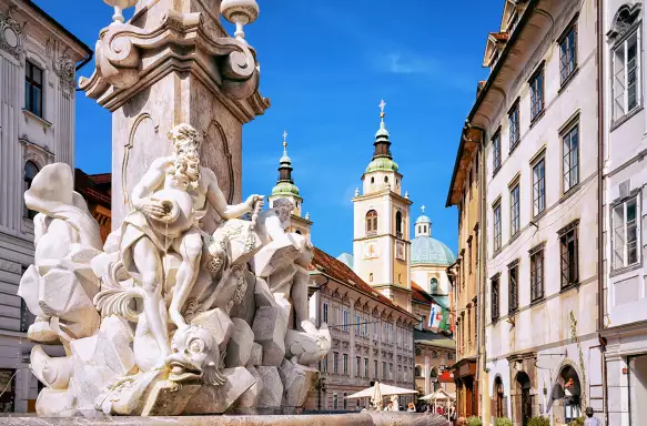Our tour takes us through the enchanting pedestrianised Old Town nestled between the base of Castle Hill and the river. Towering above the thickly forested mound sits the 15th-century castle, which has endured as a fortress, a residence for the provincial governor, a barracks, and even a prison. The old town is a charming maze of white-walled, red-roofed buildings hiding a trio of squares, each home to some of the city's landmarks, including the Town Hall, the Hercules Fountain, the Church of St Florian, and the Sticna Mansion, famous for the remarkable Stična Manuscripts crafted by Cistercian monks. And let us not forget the breathtaking Church of St. Nicholas, a perfect example of Roman baroque architecture. (Be sure to glance inside for a glimpse of its ornate gilded interiors - one of our first "wow" moments of the tour.)