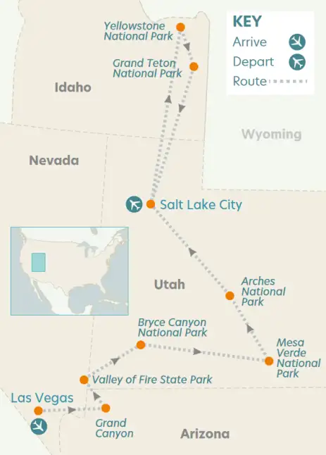 We'll visit six US states - Nevada, Arizona, Utah, Colorado, Montana and Wyoming - stopping to see some iconic US landmarks, including the Grand Canyon West, Hoover Dam and the Las Vegas Strip. So, get ready to check a few things off your bucket list! This tour is ideal for travellers who appreciate the dazzling displays of Mother Nature's raw power and beauty.