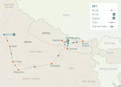 Feel the intense energy of India and the serene calmness of Nepal on an extraordinary journey through breathtaking scenery, remarkable architecture and vibrant culture.