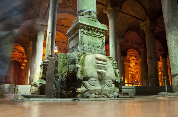 Lost until it was rediscovered in the 16th century, the cistern has been welcoming visitors since 1837. Described as an underground cathedral, this feat of engineering dates back to the reign of Emperor Justinian in 532. The cistern could hold up to 80,000 cubic metres of water – and, standing inside it, you won't doubt it. With over 300 marble columns made from stone said to have been salvaged from ruined temples, look out for some of the ornate carvings including the famous carved heads of Medusa - eerie!