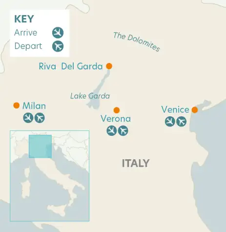 Discover the mountain scenery and pastel-coloured villages of Lake Garda, the architectural jewels of Venice and romantic ambience of Verona on this expertly crafted tour of Italy's most elegant highlights.