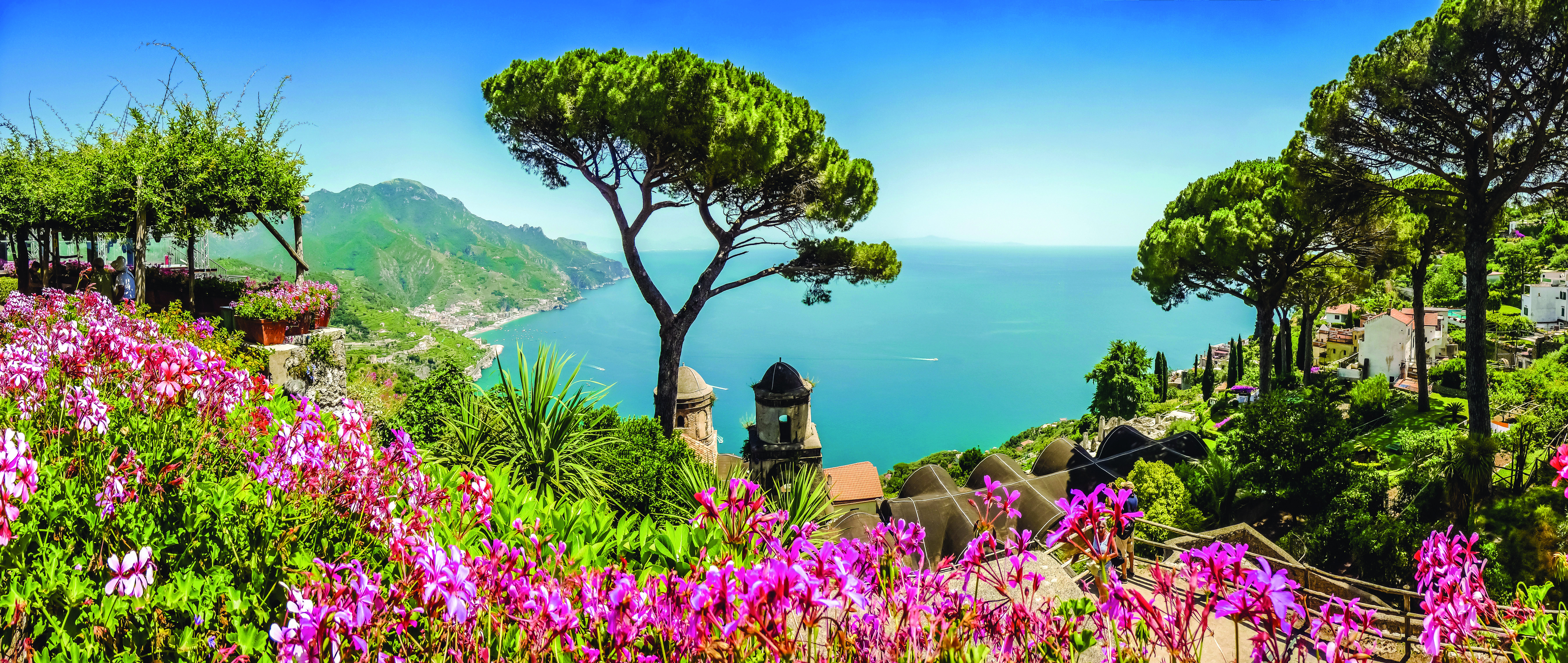 Experience the sublimely beautiful Amalfi coast, and visit the exquisite Rufolo Gardens in Ravello.