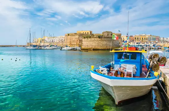 Today we’ll head further south to Gallipoli, known as 'Città Bella' or 'beautiful city' thanks to its striking beauty. It has twin souls: part fun, coastal town with sandy beaches, part historic centre with a quaint old town encased in defensive walls, with a robust 13th-century fortress on its eastern edge that's protected the lovely little town for centuries.