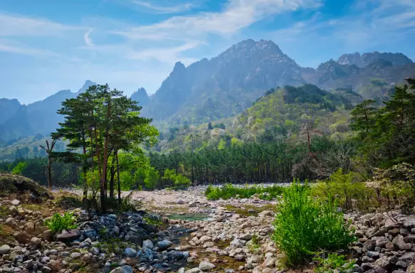 After breakfast, we'll take a short drive just outside the city to Seoraksan National Park. Set over 63 square miles, the park is home to one of Korea's most beautiful mountains and boasts rugged peaks, cliffs, numerous waterfalls, unique rock formations, and scenic valleys. It's one of the most beautiful areas on the Korean peninsula and holds the distinction of being Korea's first UNESCO Biosphere Reserve.