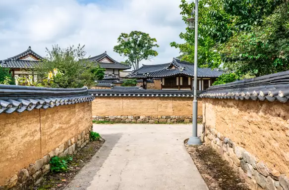 Continuing our journey, we'll travel to the village of Hahoe, another incredible UNESCO World Heritage site. This living museum is considered the best-preserved 15th-century clan village in Korea. This charming, old village portrays life in the Joseon Dynasty, with around 460 still-inhabited traditional structures, such as thatched-roof houses, aristocratic mansions, Confucian academies and more.