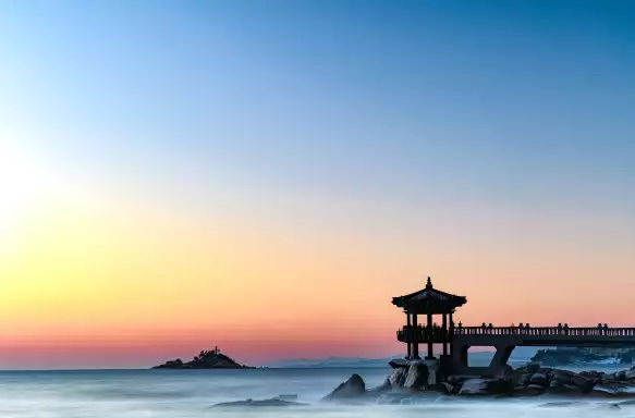 On arrival, we'll visit one of South Korea's most popular beaches, Haeundae Beach, where you can walk its 1.5km of white sand, paddle in the shallow bay or bathe in the free hot springs foot bath.