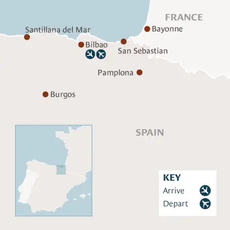 Our tour begins in San Sebastián, a coastal beauty where you’ll find some of Spain’s finest food. We spend time in Bayonne, one of the prettiest cities in the French Basque Country, to observe the fascinating cultural differences across the border, and visit Villa Arnaga, which was once home to French author Edmond Rostand.
