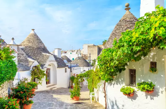As we continue our journey, you'll start to see charming white stone huts topped with conical roofs—these unique structures are known as trulli and are iconic landmarks in the Puglia region. The landscape here is adorned with clusters of oak trees and divided by traditional dry stone walls, evoking a sense of rural Tuscany. Upon reaching Alberobello, recognised as a UNESCO World Heritage site, you’ll be amazed to find that certain areas are predominantly filled with these trulli, giving it a fantastical ambience reminiscent of a 'hobbit' village. This exploration is often regarded as one of the tour's highlights, allowing us to delve into the construction methods of trulli, their fascinating histories, and the various Christian, Pagan, or celestial symbols that embellish them. Our adventure continues as we make our way to Matera, where we’ll stay for four nights.