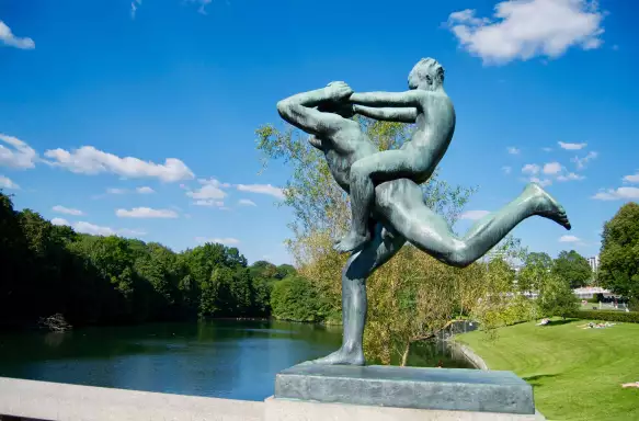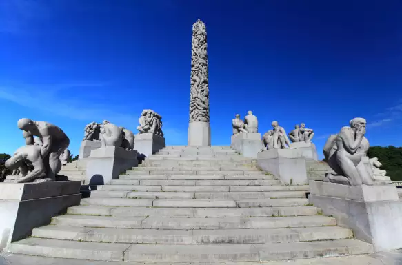 With a smaller group of your fellow explorers, we'll travel along Oslo's main thoroughfare, Karl Johnas Gate, to see one of the country's most important buildings, the Royal Palace, where the King and Queen of Norway live and work. Nearby is the Ibsen Museum, dedicated to the playwright, Henrik Ibsen - who wrote famous works such as Peer Gynt, An Enemy of the People and A Doll's House. You'll also see the famed Vigeland Sculpture Park, which is home to more than 200 bronze, granite and cast-iron sculptures by Gustav Vigeland.
