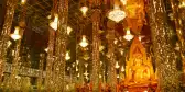 We’ll explore several key buildings, including the Golden Castle, the Vihara of Luang Phor Saksit, and the Standing Buddha Pavilion. But the true highlight is the Crystal Mandapa—a 100-metre-long sanctuary often described as Thailand’s own “hall of mirrors.” Its walls, columns, and ceiling are adorned with mirrored tiles that shimmer with light, creating a surreal and serene atmosphere. At one end lies the preserved body of Luang Por Ruesi Ling Dam, the monk who led the temple’s restoration, while at the other stands a radiant golden Buddha, its reflection dancing across the mirrored surfaces.