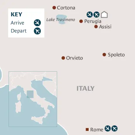 Experience rolling countryside, as we go up soaring hills topped with time-warp towns, down into the magical Frasassi Caves and onto the sparkling waters of Lake Trasimeno. If you'd like to discover what lies at the very heart of Italy – a region that's every bit as beautiful and historically important as neighbouring Tuscany but remains largely unexplored – this tour of Umbria is set to surprise and enchant.