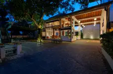 This resort offers a tranquil escape surrounded by lush greenery.
