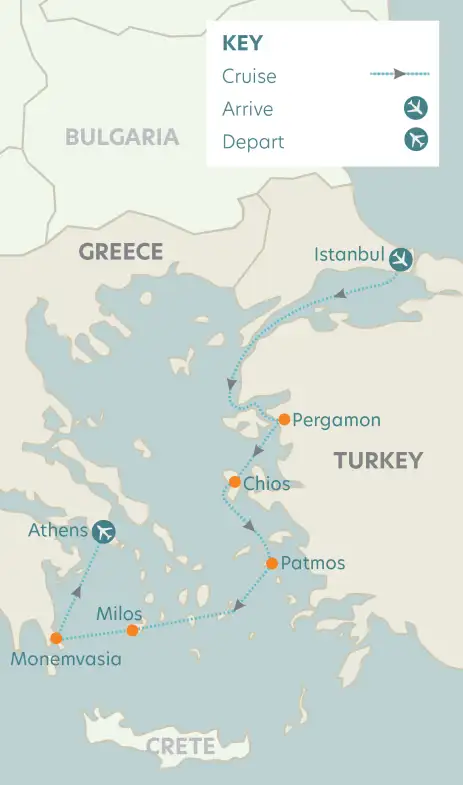 Please note for 2027, you will arrive into Athens and depart from Istanbul as the itinerary will operate in reverse.