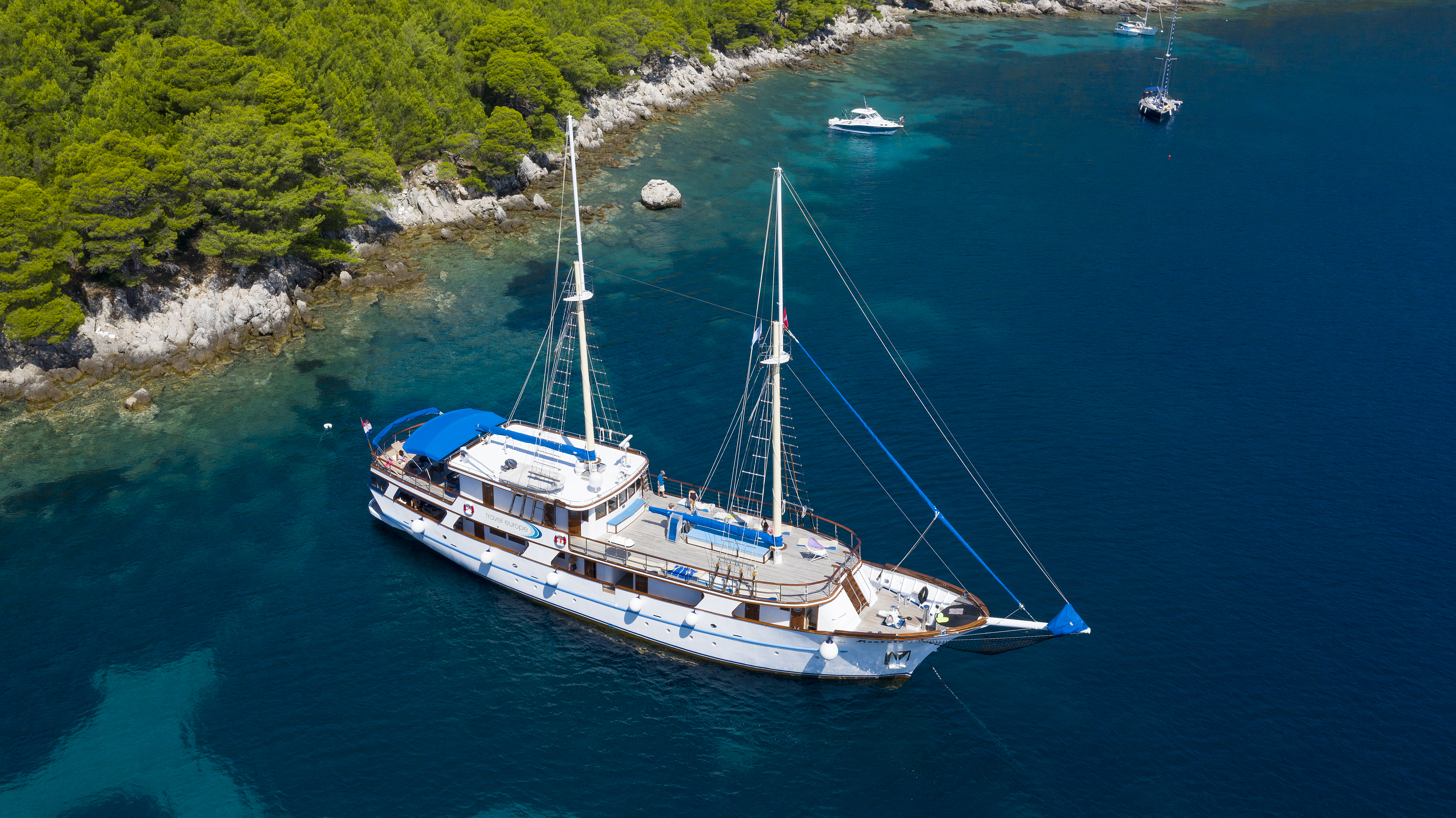 This twin-masted yacht, at a stately 36 metres, can easily access the picturesque little ports along the Dalmatian coast so when you drop anchor and hop ashore, immediately you’ll be fully immersed in every destination we visit with no time wasted.
