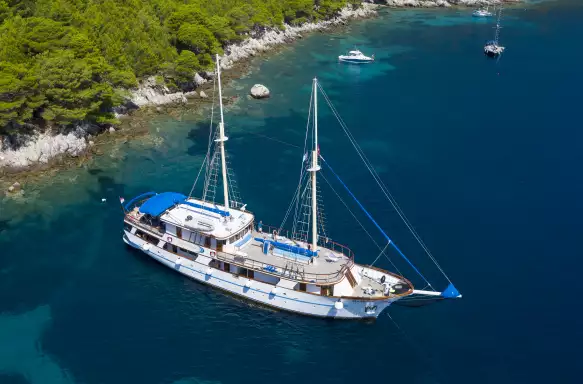 We'll sail along the stunning Dalmatian Coast, where sapphire waters meet dramatic limestone cliffs and picturesque islands beckon with their timeless charm. Glide across crystal clear waters framed by dramatic cliffs and lush islands. Swim in secluded bays, explore charming harbours like Hvar, Korčula, and Bol, and wander historic streets steeped in Venetian and Roman heritage.