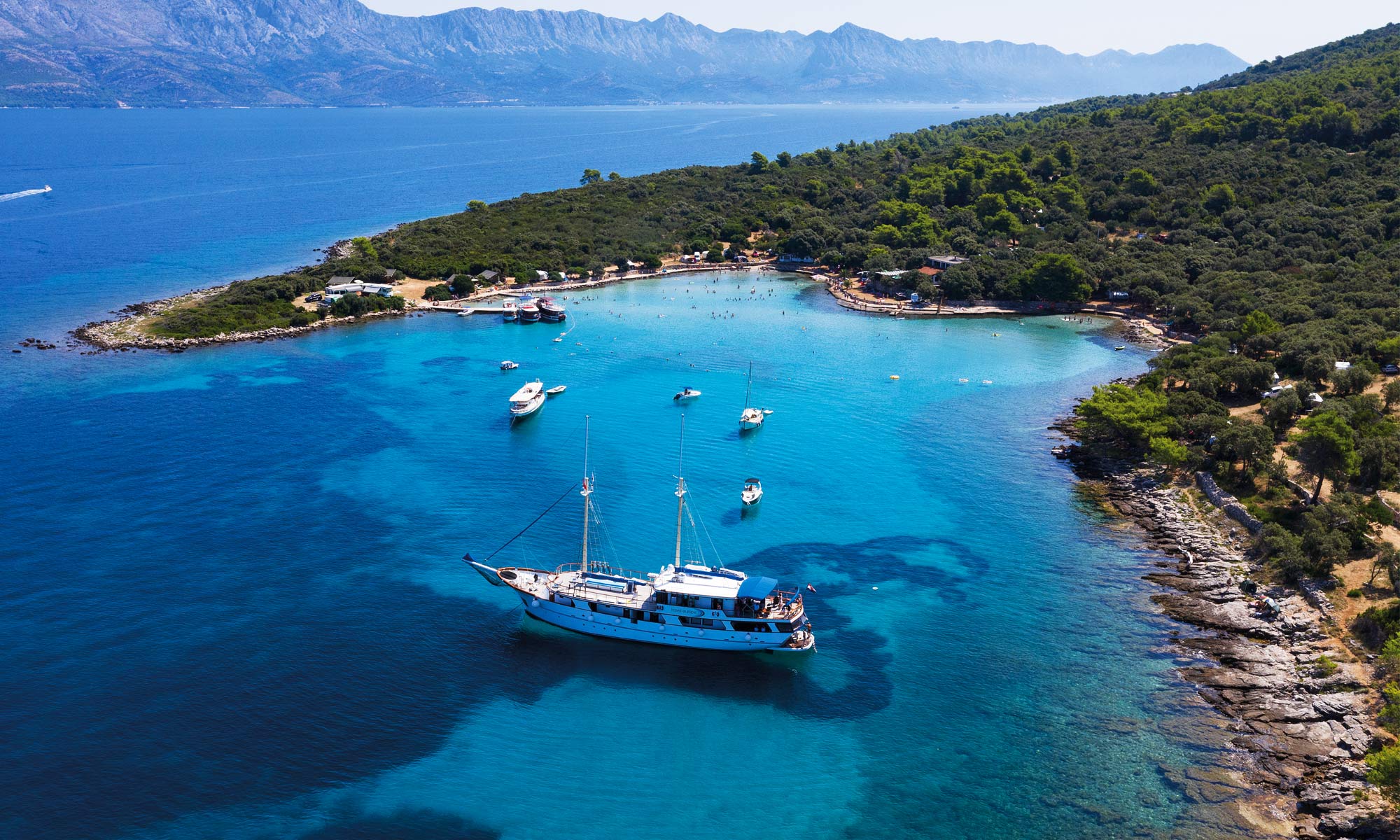 Begin your journey to Split. On arrival you will be met and transferred to Makarska harbour to board your superb ship, the magnificent four-star, twin-masted MS Mendula. As you step on board, you’ll be warmly welcomed by the crew who’ll be on hand to help you settle in and familiarise yourself with this exceptional vessel.