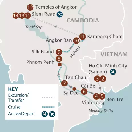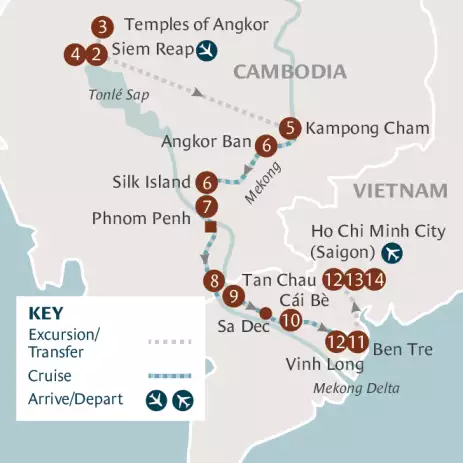 Cruise through the heart of Southeast Asia as you take in stunning countryside and scenery with our Mekong River tour.