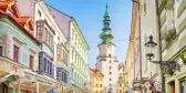 Bratislava is a city where history meets modernity, where intimate charm replaces the bustle of larger capitals, and where every street corner whispers stories of the past. The city boasts a rich history, neoclassical and gothic architecture and a welcoming atmosphere that captivates every visitor. Accompanied by a knowledgeable local guide, we'll explore the old town, a picturesque maze of cobblestone streets, pastel-coloured buildings, and lively squares as we wind our way up to Bratislava Castle perched high on a hill overlooking the city. After time to admire the panoramic views of the city and the Danube, we'll carry on to Michael's Gate, the only surviving medieval gate of the city's original fortifications and into the heart of the modern city.