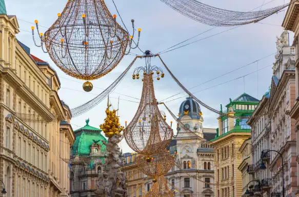 As evening settles over Linz, return to the comfort of your ship and watch as the city’s lights fade gently into the distance. Casting off before dinner, we begin our serene journey along the Danube towards Vienna. Relax over a delicious meal as the river scenery drifts by, then find a cosy spot in the lounge to unwind with a drink. With the ship gliding through the night and festive reflections shimmering on the water, it’s the perfect time to reflect on the day’s discoveries and look forward to tomorrow’s adventures in Austria’s elegant capital.