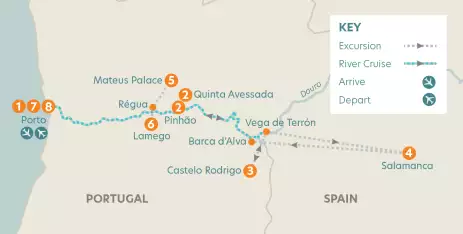 The Douro may be one of Europe's best-kept secrets but the food that is grown and eaten along its banks is not. The Portuguese are renowned for their love of good food - the flavours are fresh and wholesome (and locally grown) - so expect sweet treats, flavourful dishes and, of course, plenty of port wine. We'll visit the Roman city of Porto, the home of Port wine, and sample Portuguese wine in historic quintas. Taste the delicious almond products that Castelo Rodrigo is famous for while following in the footsteps of St. Francis and hop over the border to Salamanca for a delicious tapas lunch as we explore one of Spain's oldest cities. And that's just the onshore adventures - Portugal’s once-wild river Douro may have been tamed by locks but there's still an untouched wilderness to the valley’s breath-taking rolling hills.