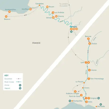 - Enjoy guided tours of some of France’s most interesting towns and cities, including Paris, Avignon, Rouen, Honfleur, Arles, Lyon and Vienne.